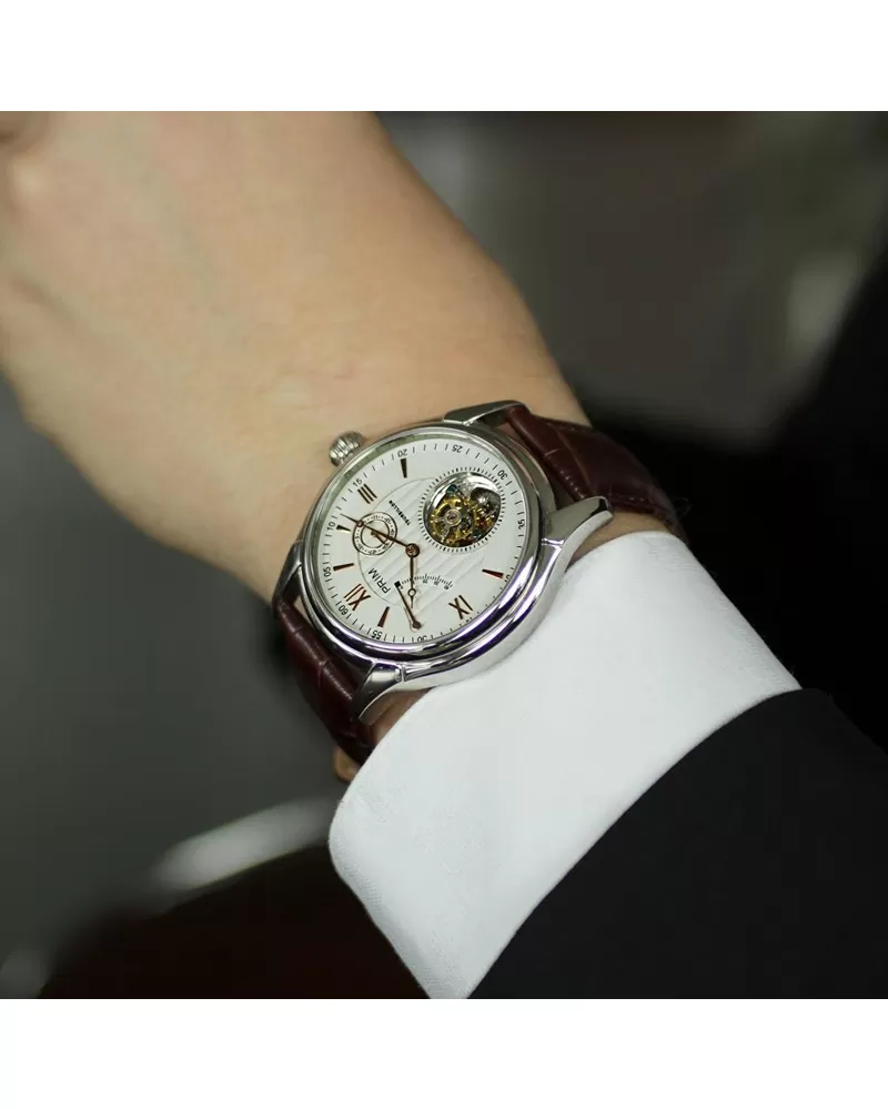 Hodinky z limitované kolekce PRIM Tourbillon Leoš Janáček, které svým zpracováním uchvátí každého majitele. Reliéfní číselník s průzorem odkrývá mechanický strojek s královskou hodinářskou komplikací zvanou tourbillon. V korunce je umístěný český granát.