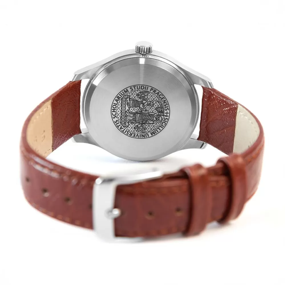 Hodinky PRIM UK jsou ideálním dárkem k promoci a důstojnou odměnou za studijní úsilí, která bude navždy připomínat významný životní milník. Tradice darovat k ukončení vysokoškolského studia náramkové hodinky trvá již několik desetiletí. Speciální absolventská edice je zdobena znakem univerzity na dýnku, písmenem „K“ na číselníku a symbolem UC na sekundové ručičce. Čistý a nadčasový design se hodí pro každodenní nošení i slavnostní příležitosti. Zadní víčko lze individualizovat jménem a datem ukončení studia, případně doplnit monogramem na korunce. Uvnitř pouzdra pracuje švýcarský bateriový strojek Ronda 715 nebo mechanický strojek z novoměstské manufaktury dle volby zákazníka.