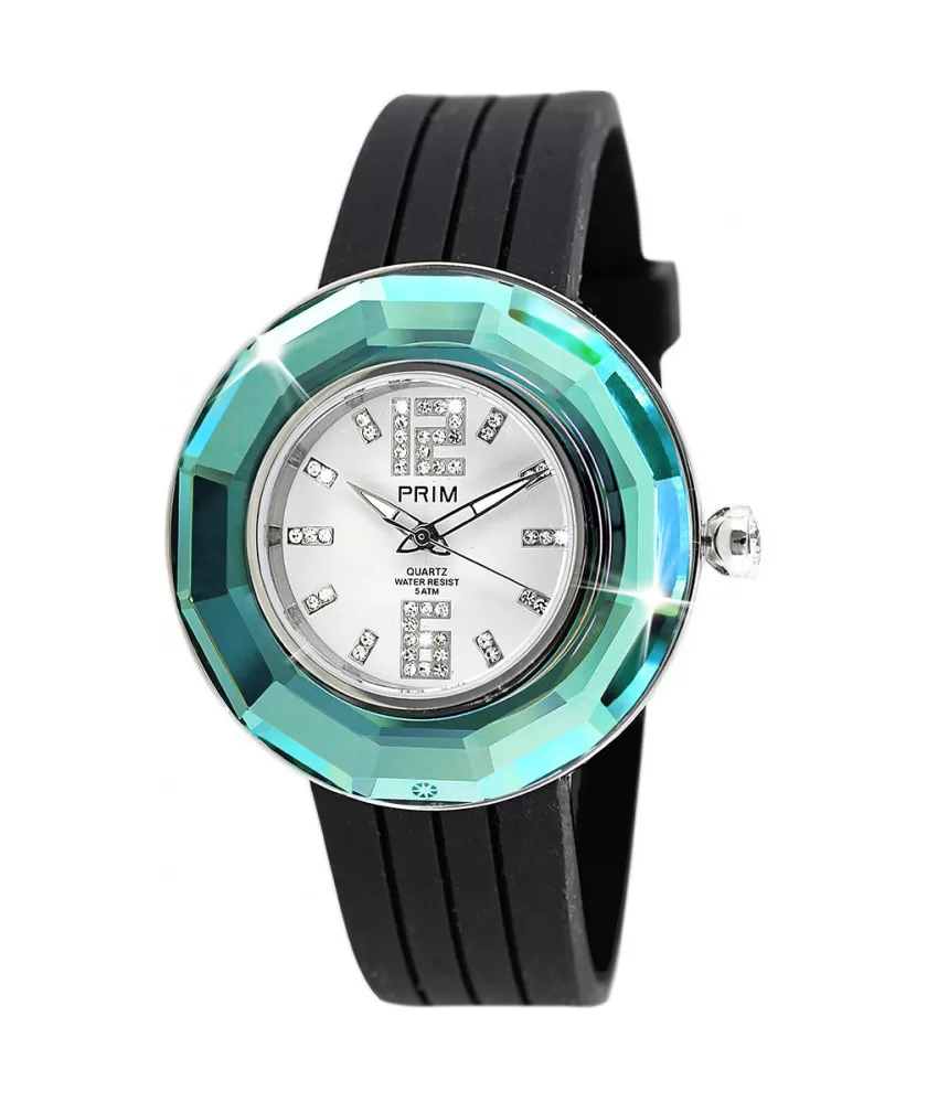 Úchvatný dámský model hodinek tradičních českých značek Prim a Preciosa PRECIOSA CRYSTAL TIME G Vás zaručeně oslní. Hodinky mají vybroušené modré okruží, díky němuž jsou hodinky nepřehlédnutelné. Čistě bílý ciferník zdobí indexy a číslice šest a dvanáct, které jsou vyskládané ze zářivých zirkonů. Řemínek hodinek je vyrobený z černého silikonu.