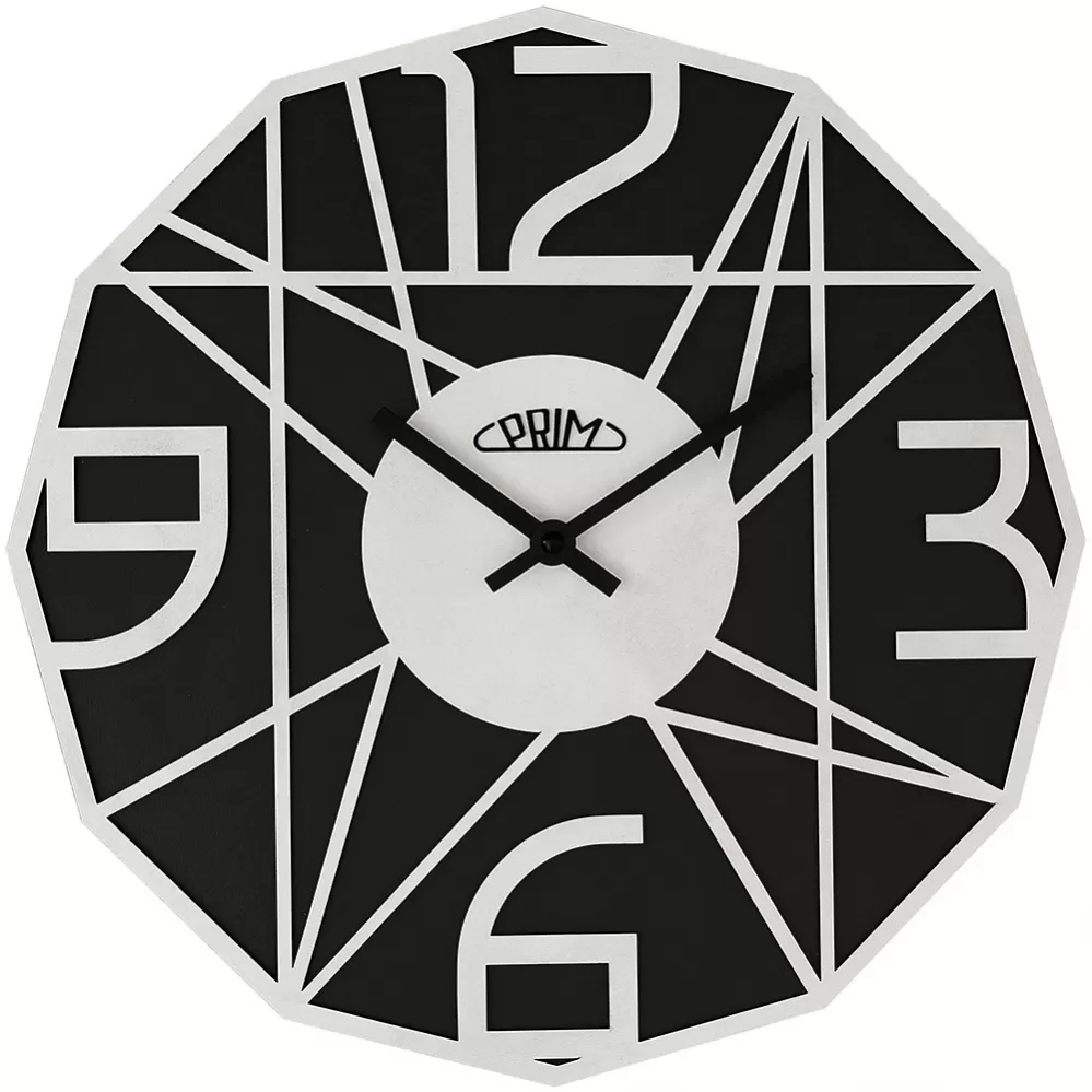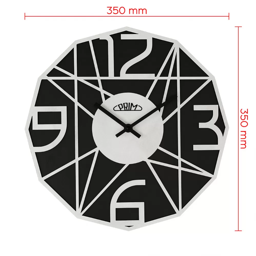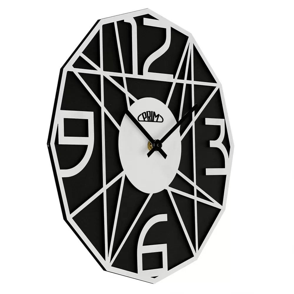 Nástěnné dřevěné hodiny PRIM Glamorous Design v netradičním tvaru. Výrazným prvkem jsou číslice v 3D provedení. Varianta 5390 má ručku z kvalitní dřevěné dýhy. Hodiny jsou vybaveny strojkem s plynulým chodem, u varianty 9000 jde o strojek krokový. Jsou zpracované z polotvrdé dřevovláknité desky (MDF). Tloušťka obou vrstev MDF je 6 mm (jedna vrstva 3 mm). Vyrobeny v ČR. Rozměry hodin 350 x 39 mm, sou napájeny jednou tužkovou baterií AA.
