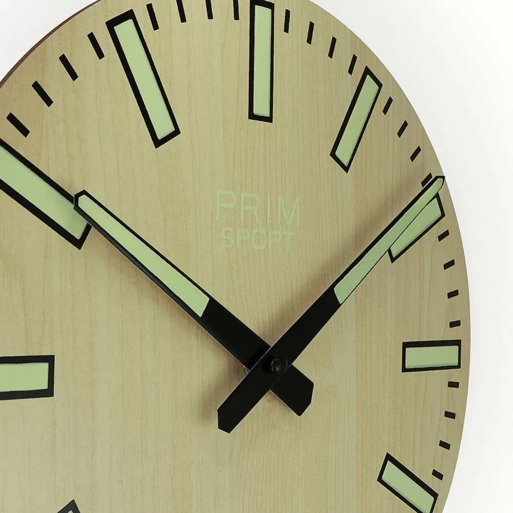 Nástěnné dřevěné hodiny PRIM Luminescent Sport I mají dýhovaný vzor a velmi výrazné sportovní indexy. Hodiny jsou vyrobeny z MDF. Nejen indexy, ale i ručičky a logo jsou potaženy luminiscenční vrstvou díky které vám budou hodiny svítit v jakékoli temné místnosti a budete tak vždy vědět kolik je právě hodin. Rozměry 297 x 40 mm.
