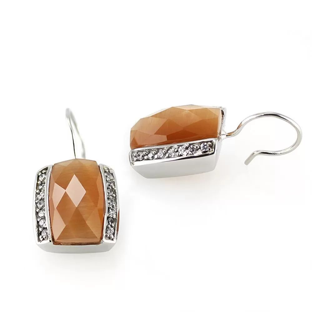 Elegantní dámské náušnice s kočičím okem a zirkony Swarovski. Tento model lze koupit v nádherné sadě. Náušnice jsou vyrobeny z antialergické chirurgické oceli.