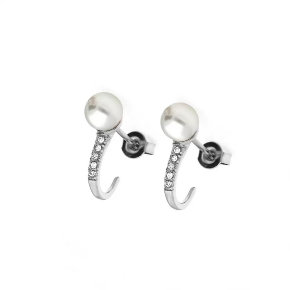 Elegantní náušnice s perlou a lesklými zirkony. Náušnice je vyroben z velmi kvalitní chirurgické oceli.