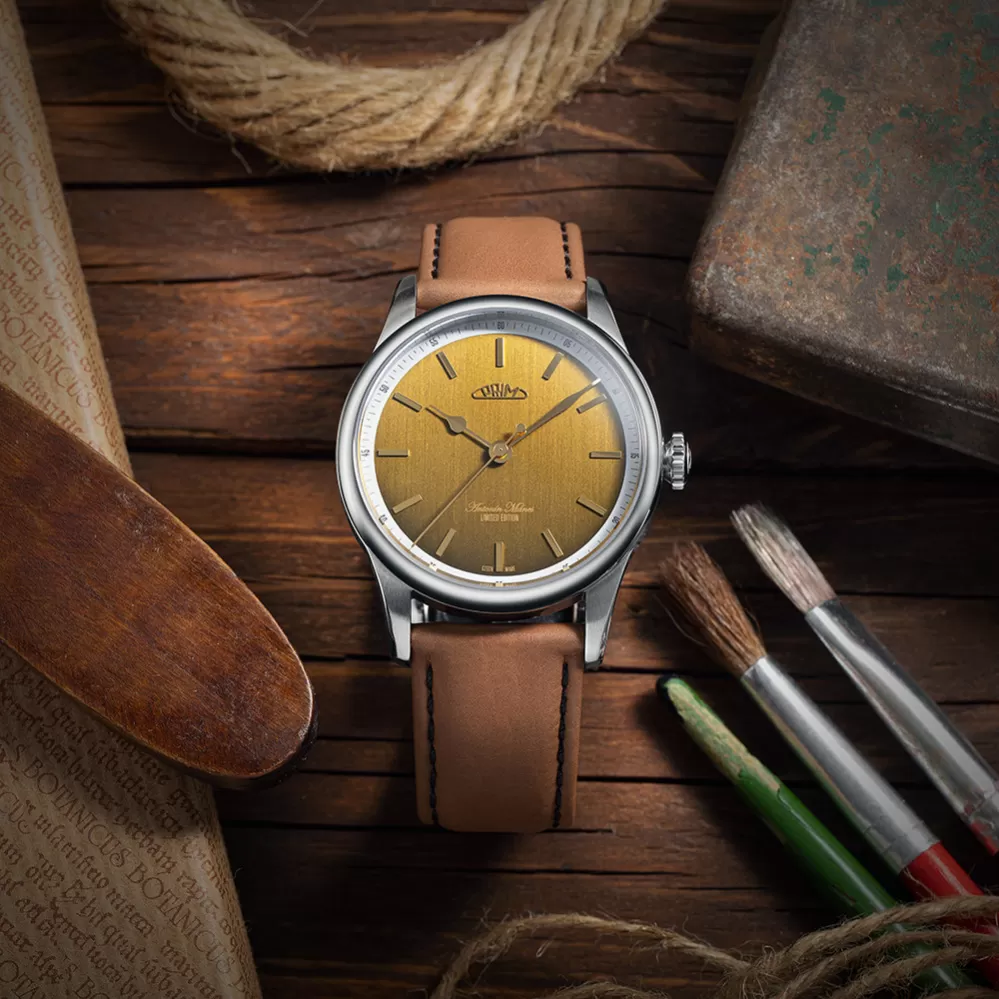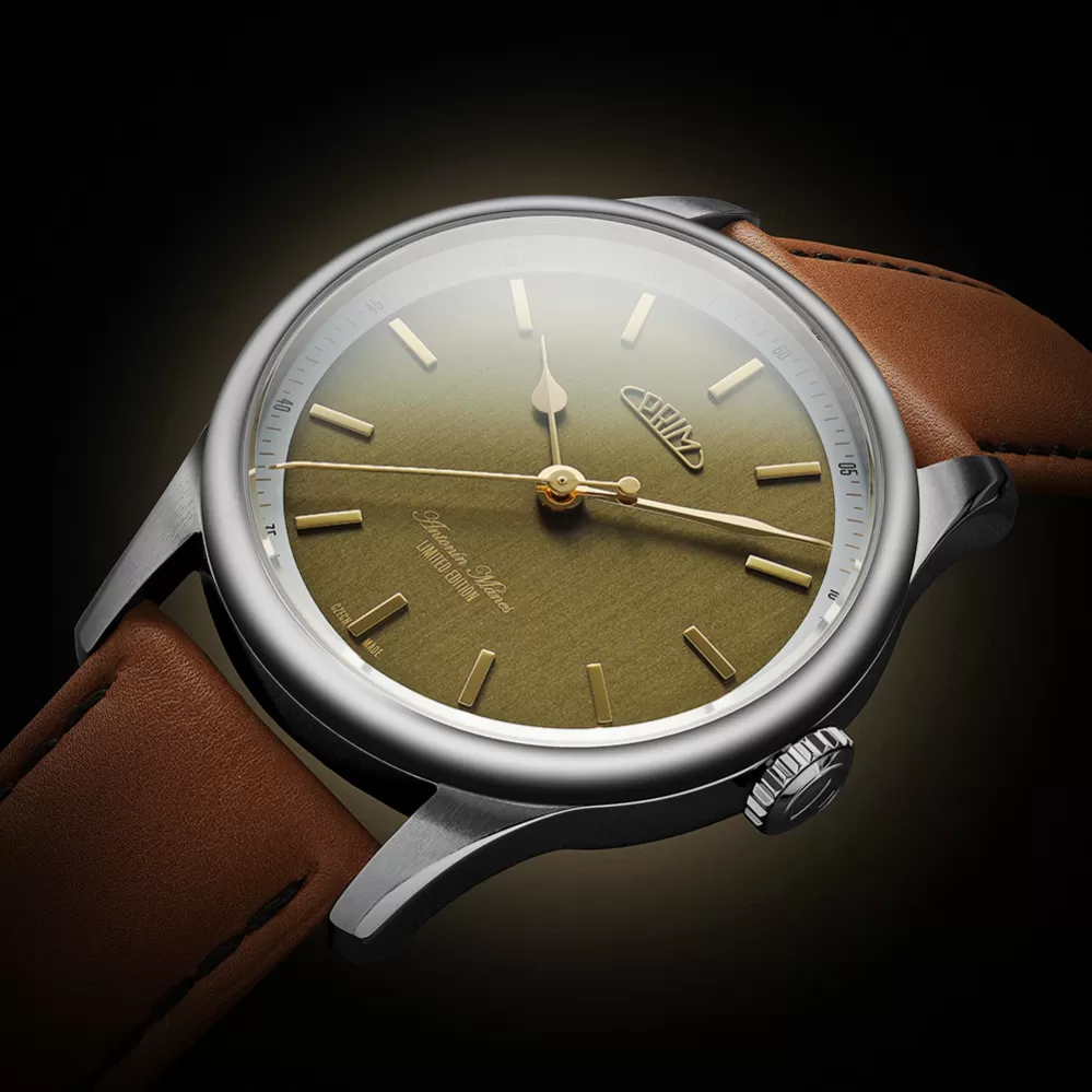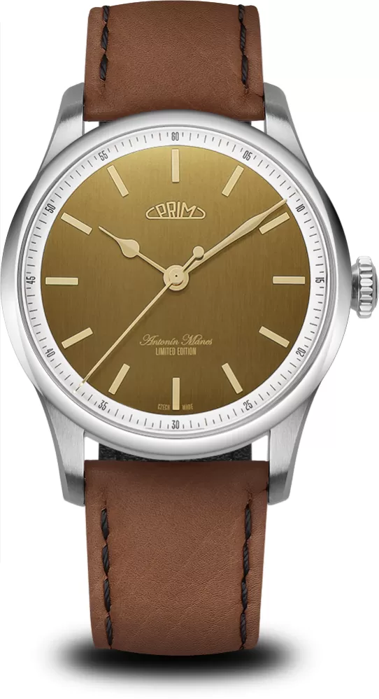 Limitovaná edice hodinek PRIM Antonín Mánes vzdává hold významnému českému malíři a jeho odkazu, a přitom spojuje estetickou hodnotu s funkčností. Kolekce, vyrobená v počtu 240 kusů (48 ks od každé verze), oslavuje 240. výročí narození umělce designem inspirovaným přírodními tóny z jeho tvorby. Hodinky vynikají minimalistickým ciferníkem bez datové funkce, zlacenými detaily, broušeným povrchem a elegantními ručkami, vše podtržené mírně klenutým safírovým sklíčkem s antireflexní úpravou. Pohon zajišťuje spolehlivý japonský automatický strojek Miyota 9039 s rezervou chodu 42 hodin, což je ideální pro každodenní nošení. Zadní víčko zdobí reprodukce Mánesova díla Krajina v bouři, která zachycuje dramatickou sílu přírody v romantickém stylu. Hodinky jsou doplněny ručně šitým řemínkem z kvalitní hovězí kůže s rychloupínacími stěžejkami a leštěnou sponou s gravírovaným logem PRIM. Nabízené varianty ciferníků zahrnují bledě modrou, tmavý antracit, smaragdově zelenou, bronzově hnědou a kovově stříbrnou.
