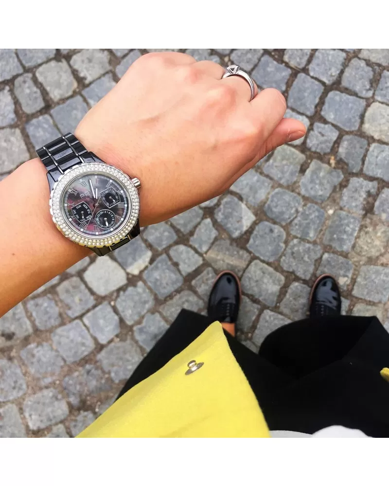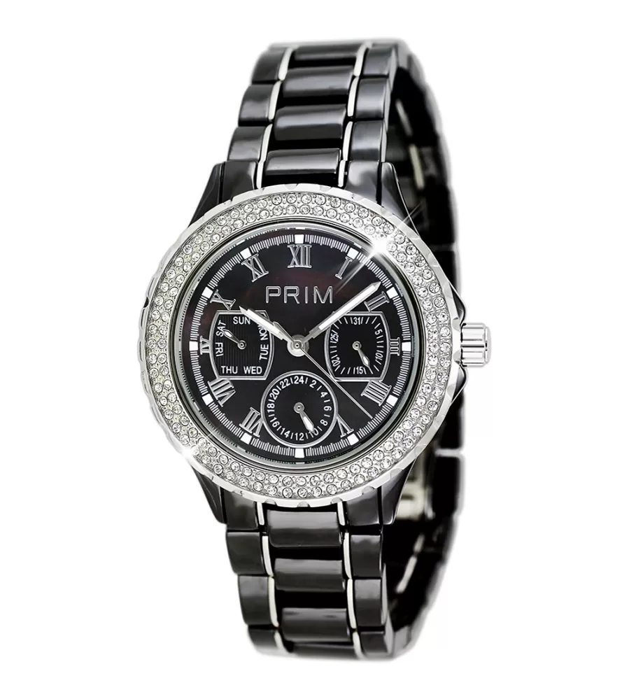 Nádherný model multifunkčních dámských náramkových hodinek značky Prim si zamilujete. Hodinky jsou celé vyrobené z bílé keramiky, jen zadní část pouzdra a ocelové prvky v řemínku jsou z ušlechtilé nerezové oceli. Okruží hodinek je zdobené zářivými krystaly Swarovski, které dodají hodinkám ten správný šmrnc. Úchvatný je i ciferník, který je z pravé přírodní perleti, chráněný je minerálním sklem.