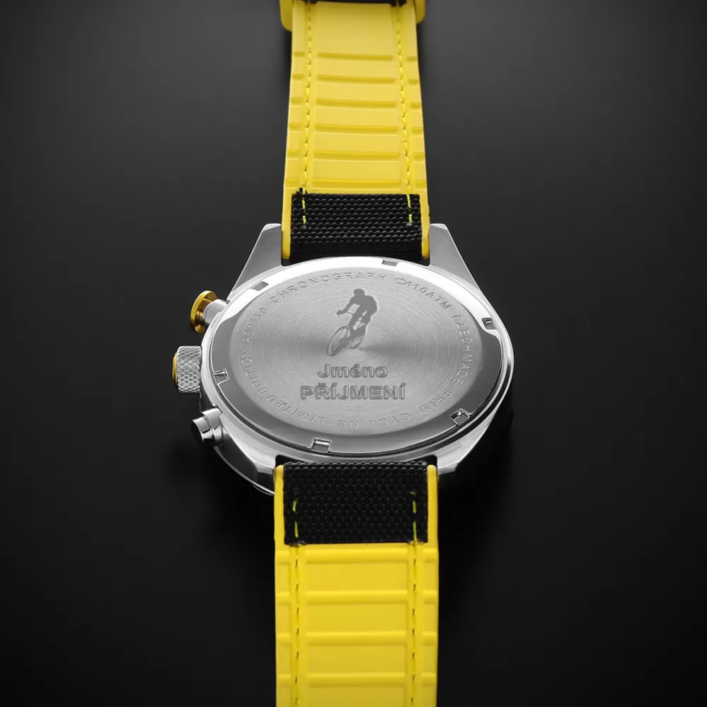Dýnko vašich hodinek PRIM Cycling si můžete personalizovat siluetou cyklisty a vlastním jménem a příjmením.