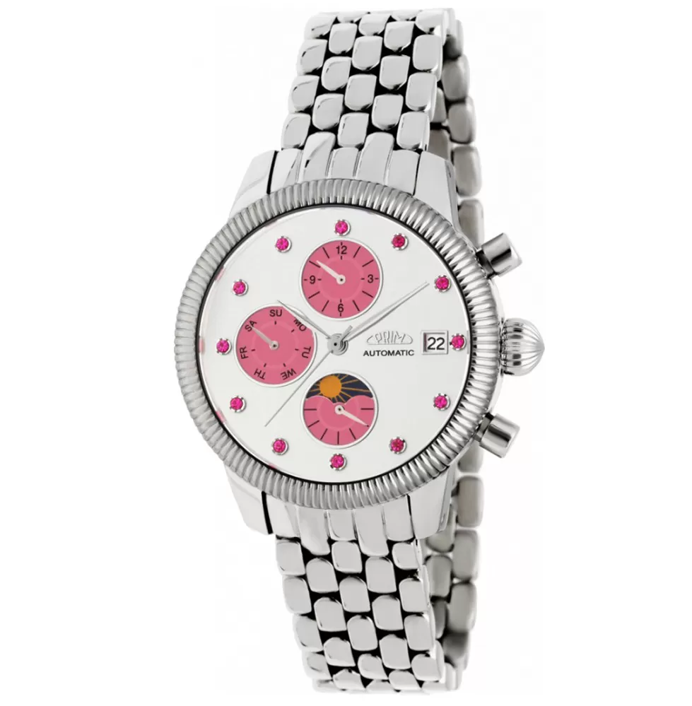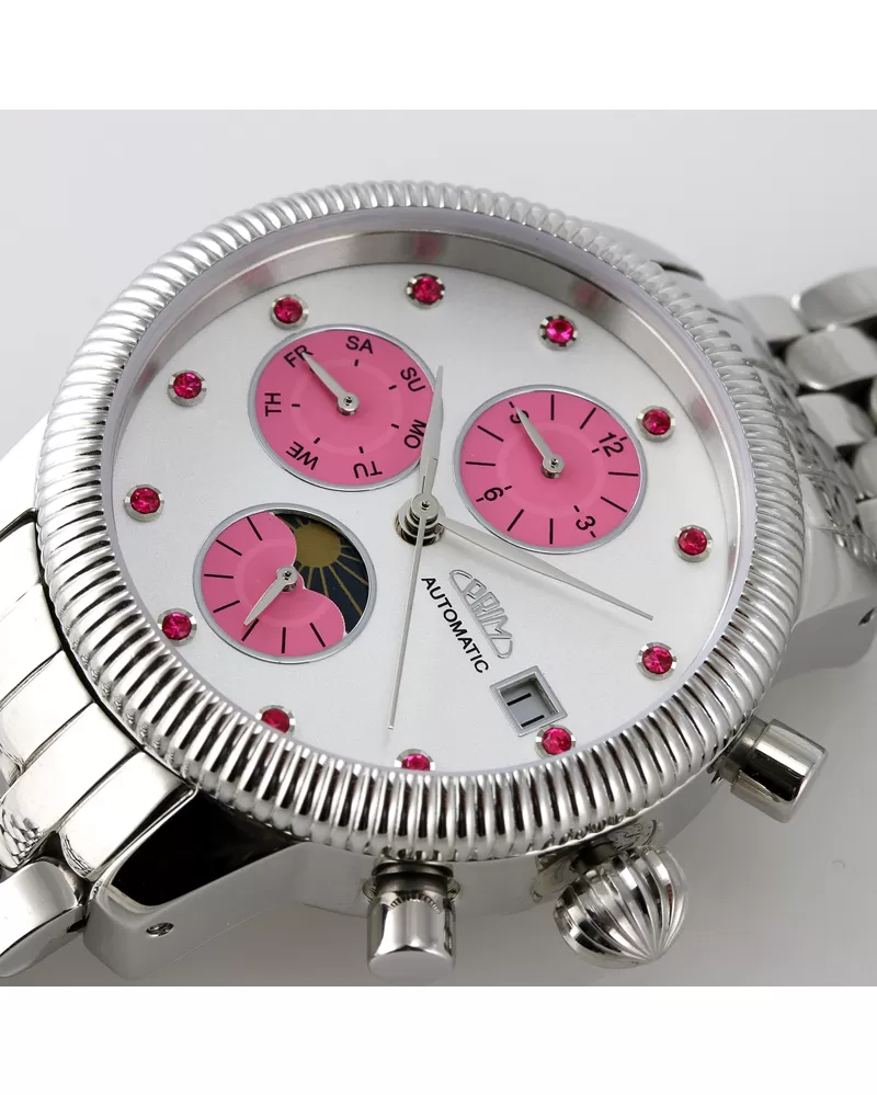 V nové kolekci dámských hodinek je pro vás opět připraveno spoustu automatických modelů. Tento model vás očaruje svým propracovaným vzhledem, který snad nikdy neomrzí. Hodinky jsou vyrobeny z ušlechtilé oceli, která je leštěné do vysokého lesku. Ciferník zaujme provedením a také má k dispozice funkce, které jistě využijete. Leštěné pouzdro skrývá mechanismus, který se natahuje automaticky z pohybů vašeho zápěstí při běžném nošení nebo mechanickým otáčením korunky.