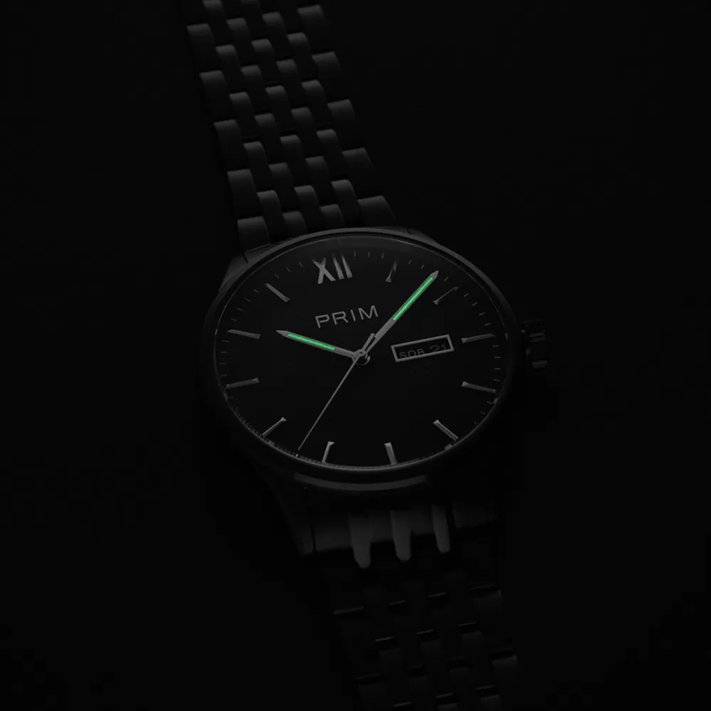 Objevte novou edici hodinek PRIM Klasik 25, které spojují nadčasový design s precizním zpracováním a odolným safírovým sklem. Tento model nabízí tradiční ukazatel dne v týdnu s českými názvy a přehledné zobrazení data. Novinkou je voděodolnost 10 ATM, která zvyšuje odolnost hodinek pro každodenní nošení. Propracovaný plastický číselník s fasovanými indexy a minutovou stupnicí na okraji zajišťuje výbornou čitelnost. Luminiscenční ručičky přidávají praktický prvek pro špatné světelné podmínky. PRIM Klasik 25 je ideální volbou pro stylového muže, který ocení eleganci i funkčnost.