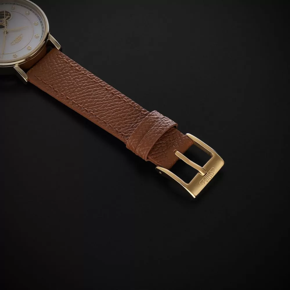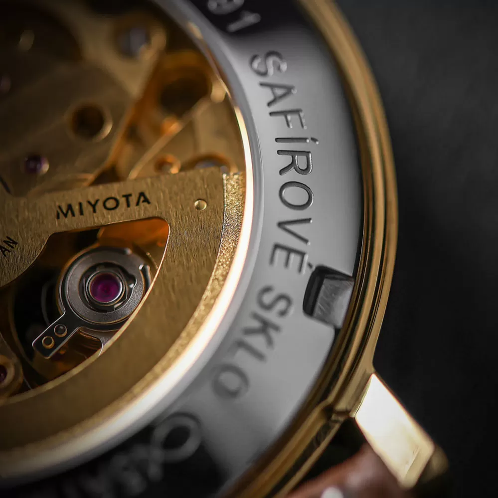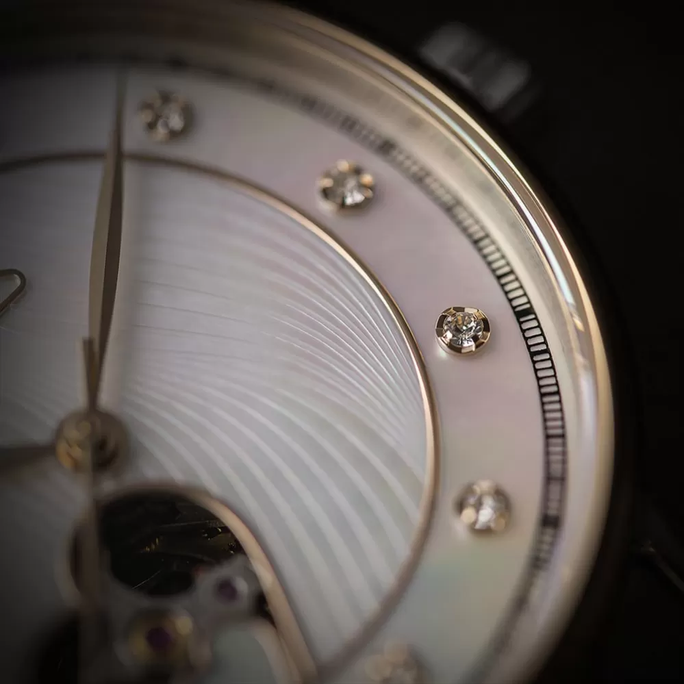 Objevte kouzlo PRIM Lady Love Elegant – dámských automatických hodinek, které spojují technickou preciznost s jemnou krásou krystalů Swarovski®. Jejich dominantou je průzor ve tvaru dvojitého srdce, symbolizující spojení elegance a emocí. Pouzdro z leštěné nerezové oceli 316L ukrývá japonský automatický strojek Miyota 82S0 s rezervou chodu až 42 hodin. Pod safírovým sklíčkem s antireflexní úpravou se nachází perleťový číselník s plastickou texturou a aplikovanými indexy zdobenými krystaly Swarovski®. Model je dostupný s ručně šitým koženým řemínkem nebo ocelovým tahem, ladícím k barvě pouzdra. PRIM Lady Love Elegant je dokonalým spojením ženské jemnosti, stylu a hodinářského umění.