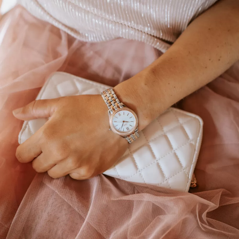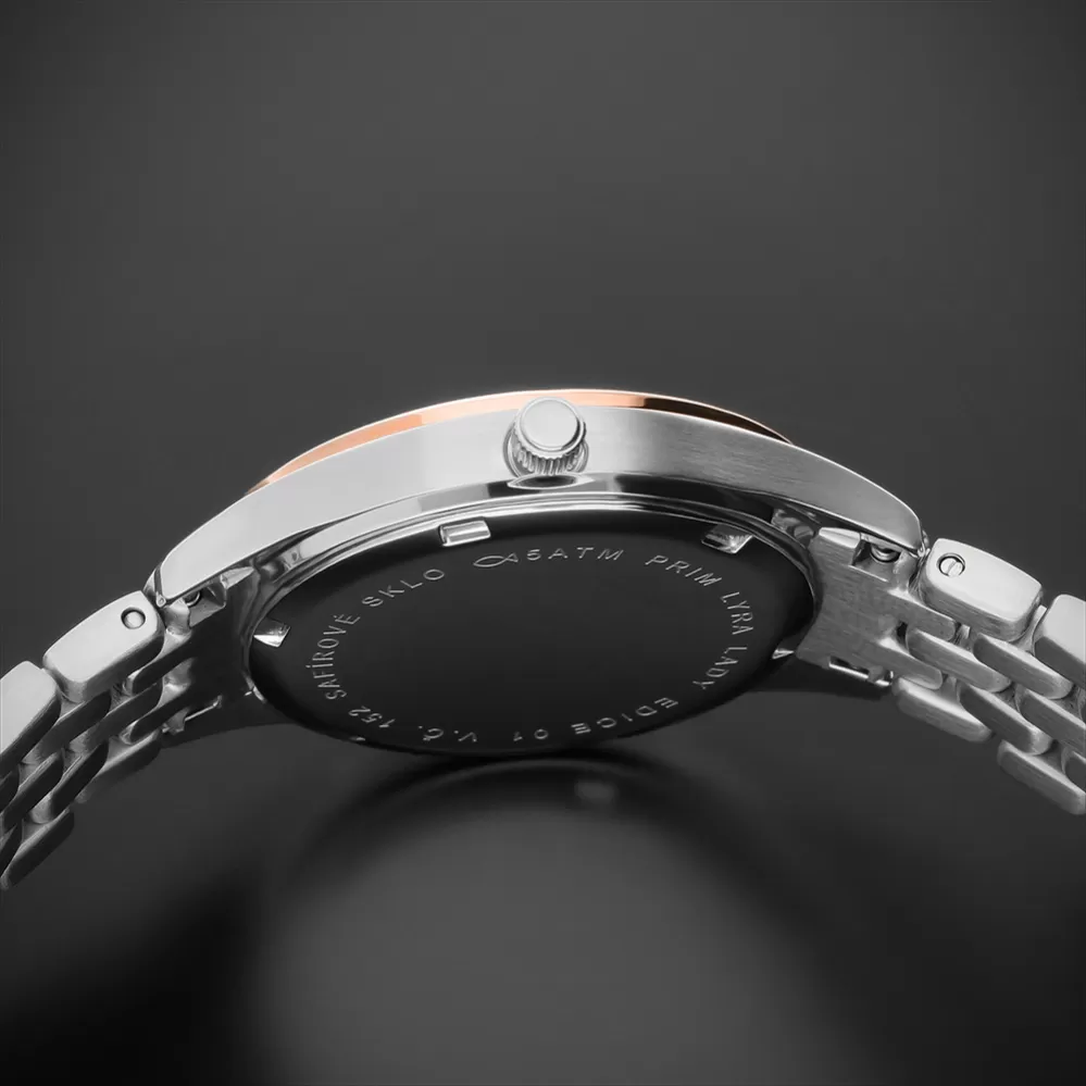 Dámské společenské hodinky PRIM Lyra jsou vyrobeny z ušlechtilé oceli 316L, kombinující lesk a brus pro elegantní vzhled. Perleťový číselník s fasovanými indexy a jemným minutovým čítačem je chráněn safírovým sklem s antireflexní a antitouch vrstvou. Voděodolnost 5 ATM zajišťuje odolnost při běžném používání, což činí tyto hodinky vhodné jak pro společenské příležitosti, tak pro každodenní nošení. K dispozici jsou různé barevné varianty od klasické stříbrné až po zlatou.