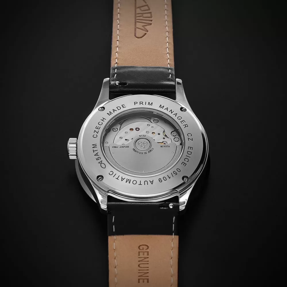 Model PRIM Manager přináší sportovně elegantní charakter s velkým pouzdrem o průměru 45 mm a výškou 15 mm. Je poháněn automatickým strojkem Miyota 9122, který nabízí funkce data, dne v týdnu i měsíce. Ciferník je chráněn safírovým sklem s antireflexní vrstvou. Pouzdro je vyrobeno z oceli. Vodotěsnost 5 ATM umožňuje běžné každodenní použití bez obav z vlhkosti či deště.