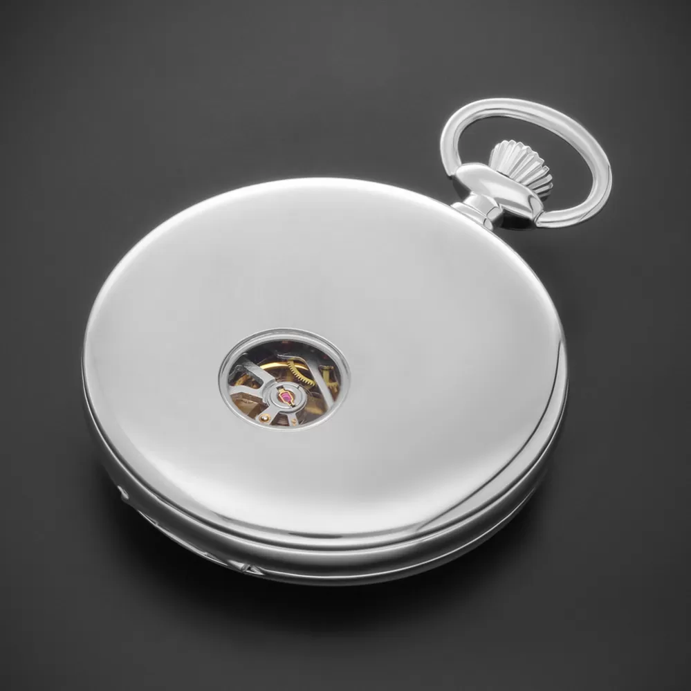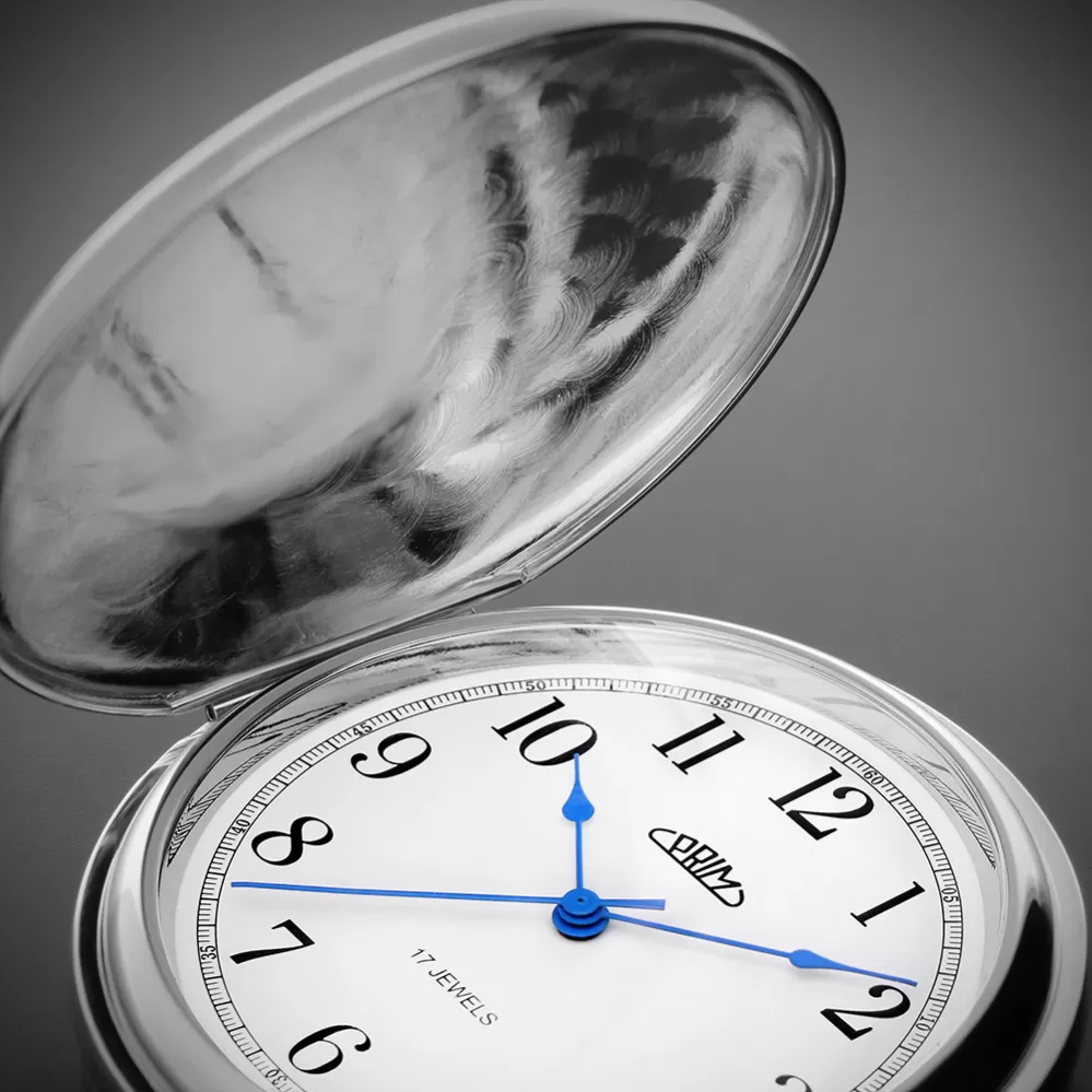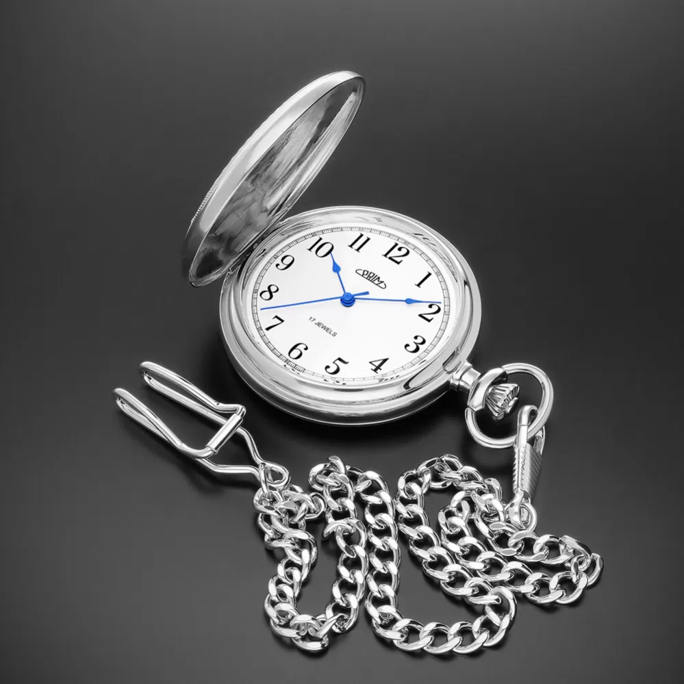 Klasické mechanické kapesní hodinky PRIM s ručním nátahem s arabskými číslicemi. Nově navržený plášť hodinek zdobí symbol českého znaku, tedy dvouocasý lev doplněný erbem, který se perfektně hodí k individualizaci monogramu. Hodinky jsou dodávány s nerezovým řetízkem. Rozměry 50 x 68 x 14 mm.