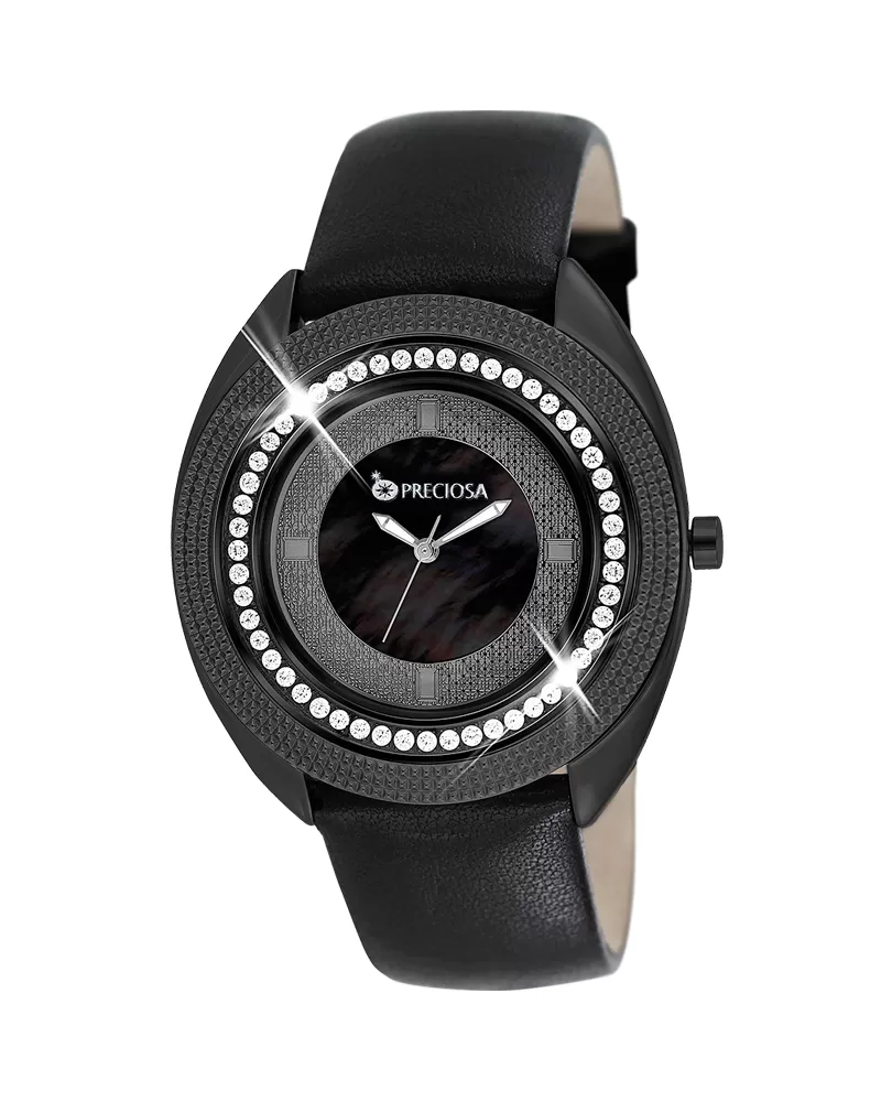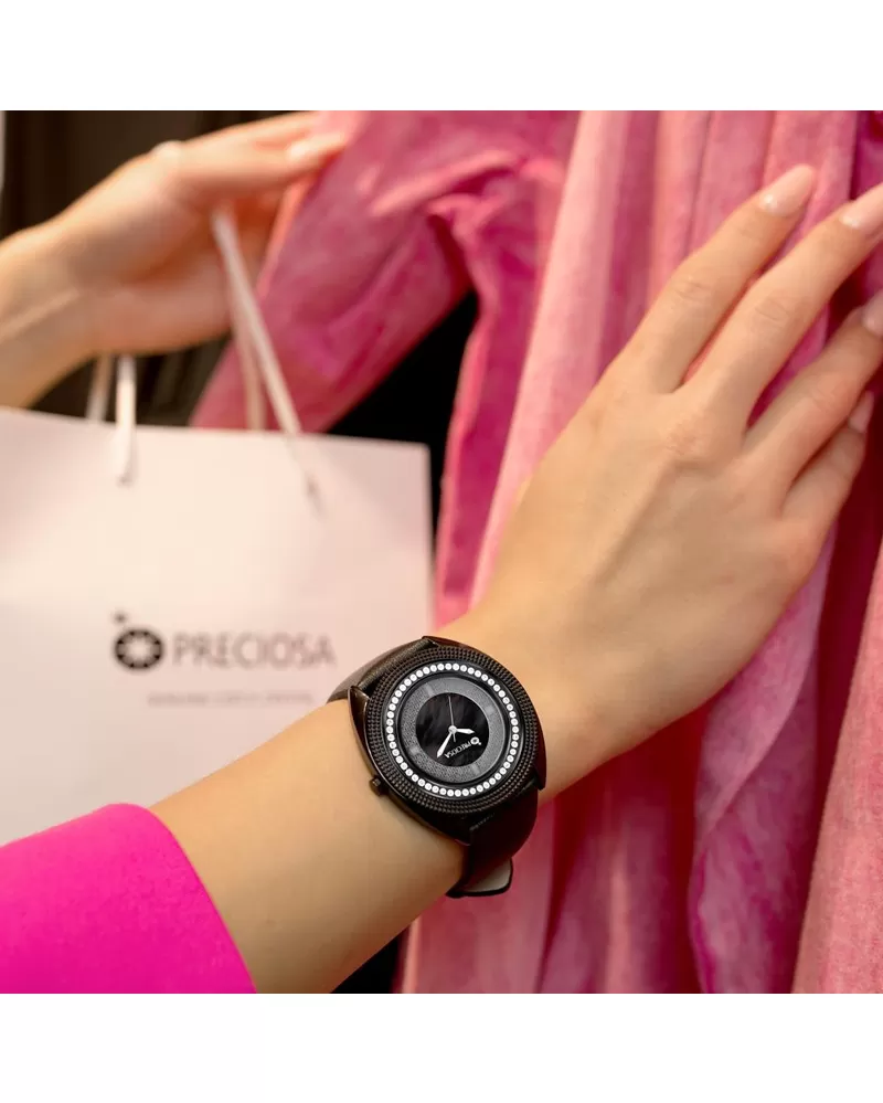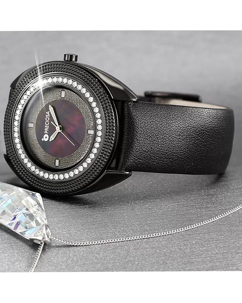 Model Shaula je speciální dámská kolekce hodinek PRIM Preciosa Charm. Kombinuje netradiční provedení pouzdra s kubickou zirkonií Preciosa, kterou skvěle doplňuje moderní vzorovaný číselník s perleťovým nádechem. Pouzdro je vyrobeno z ušlechtilé oceli 316 L upravené leštěním do vysokého lesku. Zdobení pouzdra kubickou zirkonií PRECIOSA je provedeno CNC technologií, kdy jsou krystaly fasovány do ocelového pouzdra. Eleganci a šarm hodinkám dodává řemínek z kvalitní kůže. 5 ATM zaručuje odolnost proti vodě při běžném užívání.