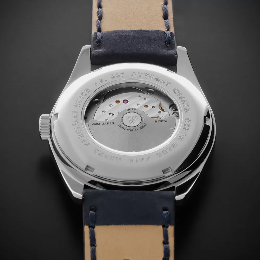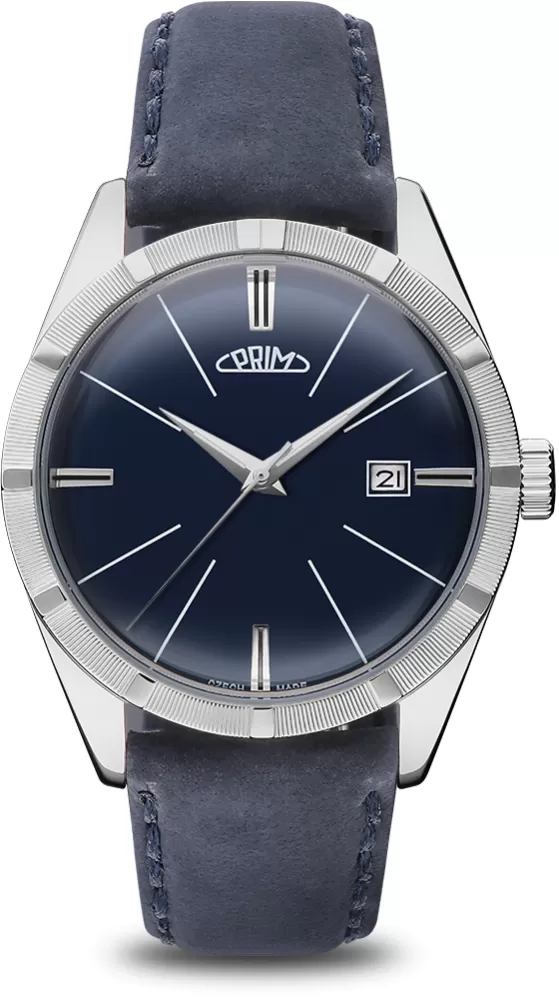 Model PRIM Repre, původně známý jako PRIM Diplomat, přináší elegantní klasiku 60. let v moderním provedení a nových podzimních barvách. Hodinky zaujmou lakovaným ciferníkem s tradičním motivem a zdobenou lunetou inspirovanou historií značky. Model PRIM L Repre je osazen kalibrem Premium Slim Miyota 9015 s voděodolností 5 ATM a vyniká vystouplými indexy na pozicích 3, 6, 9 a 12. Pouzdro je uzavřeno nerezovým dýnkem s označením edice a výrobním číslem. Hodinky jsou doplněny řemínkem z kvalitní hovězí kůže, který podtrhuje jejich elegantní vzhled.