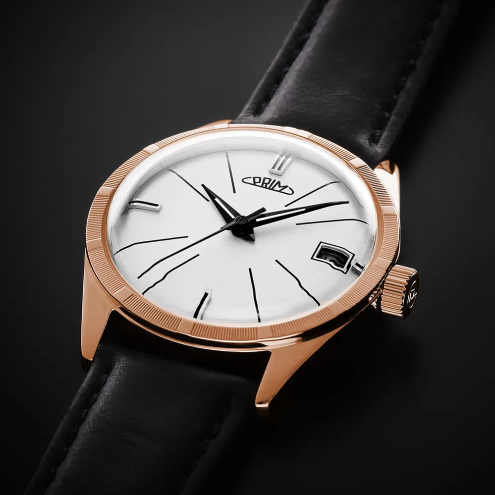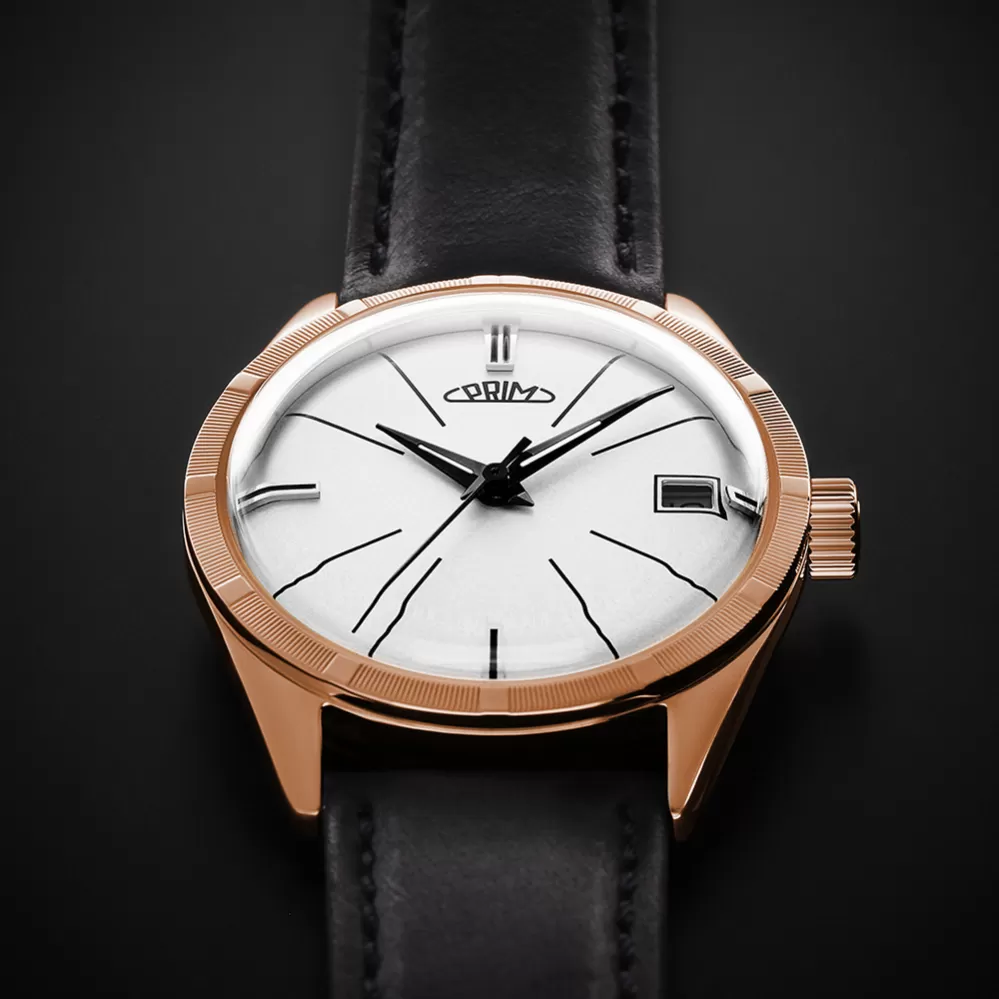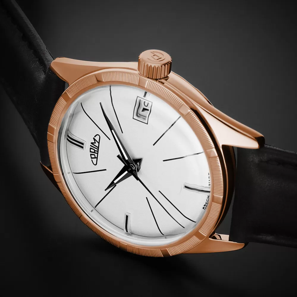 Model PRIM Repre, původně známý jako PRIM Diplomat, přináší klasickou eleganci 60. let v moderním provedení. Hodinky zaujmou lakovaným ciferníkem s tradičním motivem, zdobenou lunetou a vystouplými indexy. Pouzdro z oceli a je doplněn tvrzeným minerálním nebo volitelným safírovým sklem. Charakteristická korunka s logem PRIM symbolizuje plynutí času a zadní víčko nese označení edice s výrobním číslem.