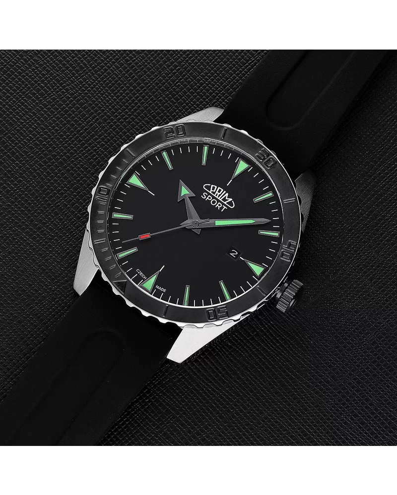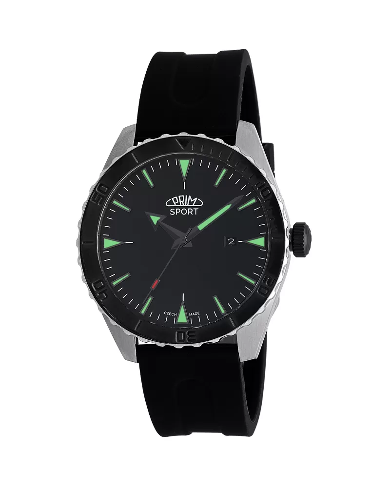 Nová edice úspěšného pánského automatického modelu PRIM Sport Adventure. Nová velikost pouzdra 45 mm, odvážné barvy, 10 ATM se šroubovací korunkou, japonské super-lite indexy, ručičky a kalibr s 60 hod. nátahem - to je edice Adventure. Designéři navrhli sportovní ručky, které jsou pokryty japonskou super luminiscenční vrstvou pro lepší odpočet času za snížené viditelnosti.