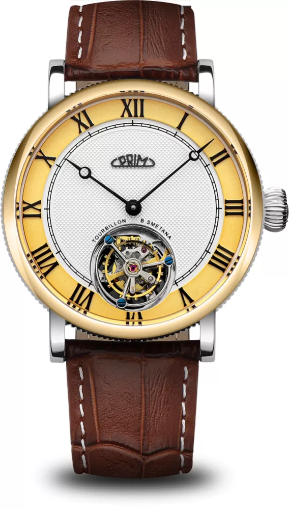 Společnost PRIM představuje nový model hodinek PRIM Tourbillon Bedřich Smetana, jedinečnou limitovanou edici na počest skladatele Bedřicha Smetany. Tento exkluzivní model vznikl k výročí jeho narození a oslavuje jeho význam pro českou hudbu a kulturu. Hodinky spojují nadčasovou eleganci, precizní hodinářskou práci a luxusní detaily. Edice je limitována na pouhých 50 kusů, z nichž 25 má okruží z 18karátového zlata o váze 12 gramů. Design doplňuje tulipánová korunka se 4mm drahým kamenem, jako je diamant, rubín nebo safír. Tento detail zdůrazňuje jedinečný charakter hodinek. Model se stává nejen výjimečným časoměřičem, ale i cenným sběratelským kouskem. Hodinky jsou dostupné s dodáním 3-7 pracovních dnů od zaplacení.