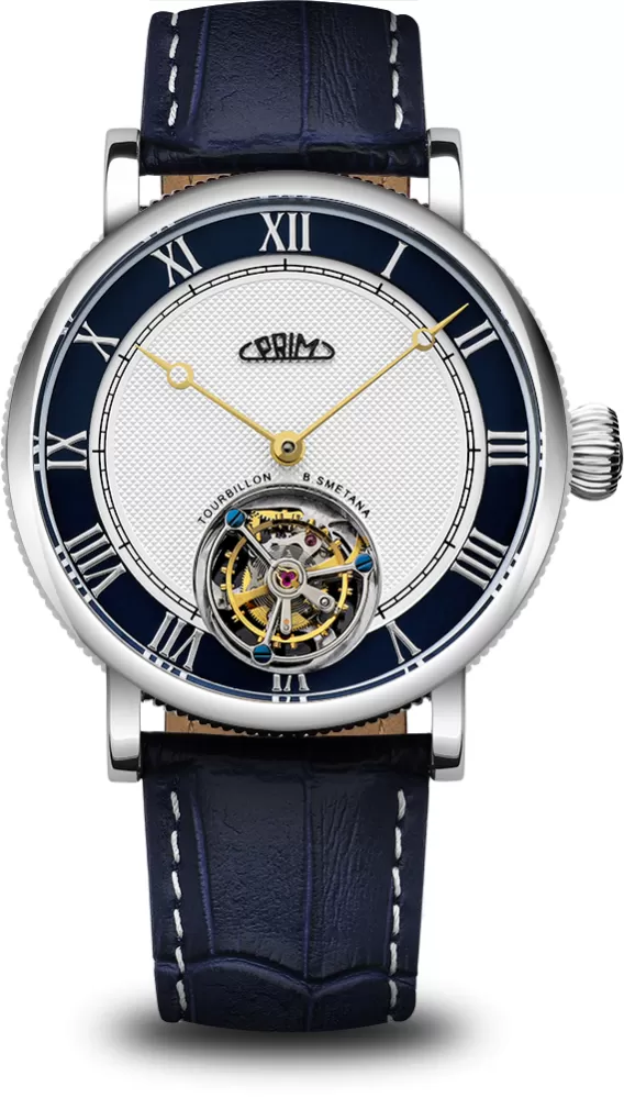 Společnost PRIM představuje nový model hodinek PRIM Tourbillon Bedřich Smetana, unikátní limitovanou edici na počest českého skladatele Bedřicha Smetany. Tento exkluzivní časoměřič vznikl k výročí Smetanova narození a oslavuje jeho přínos pro českou hudbu a kulturu. Hodinky spojují nadčasovou eleganci, precizní hodinářskou práci a luxusní detaily, čímž se stávají sběratelským klenotem. Limitovaná edice zahrnuje pouze 50 kusů, z nichž 25 zdobí okruží z 18karátového zlata o váze 12 gramů. Design korunuje tulipánová korunka s 4mm drahým kamenem, jako je diamant, rubín nebo safír. Tento detail dodává hodinkám nezaměnitelný vzhled. Model představuje dokonalé spojení tradiční hodinářské práce a kulturního odkazu. Hodinky budou dodány 3-7 pracovních dnů od zaplacení.