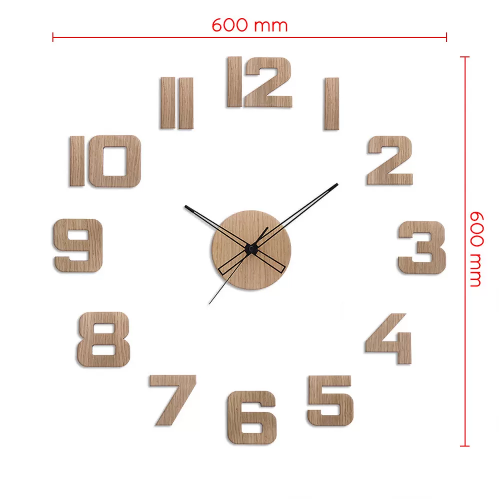 Nástěnné dřevěné nalepovací hodiny PRIM Veneer jsou vyrobené z kvalitní dřevěné dýhy o tloušťce 4 mm. S rozměry 600 x 600 mm, tyto hodiny se skládají ze samostatných nalepovacích číslic, které podpoří vaši kreativitu při jejich rozmístění na zdi. Jsou vybaveny quartz strojkem s plynulým chodem a napájeny jednou tužkovou baterií AA. Vyrobeny v ČR, každý kus je originální díky přirozeným nedokonalostem dřeva. Povrchové nedokonalosti jsou vlastností přírodních materiálů a nemohou být předmětem reklamace.