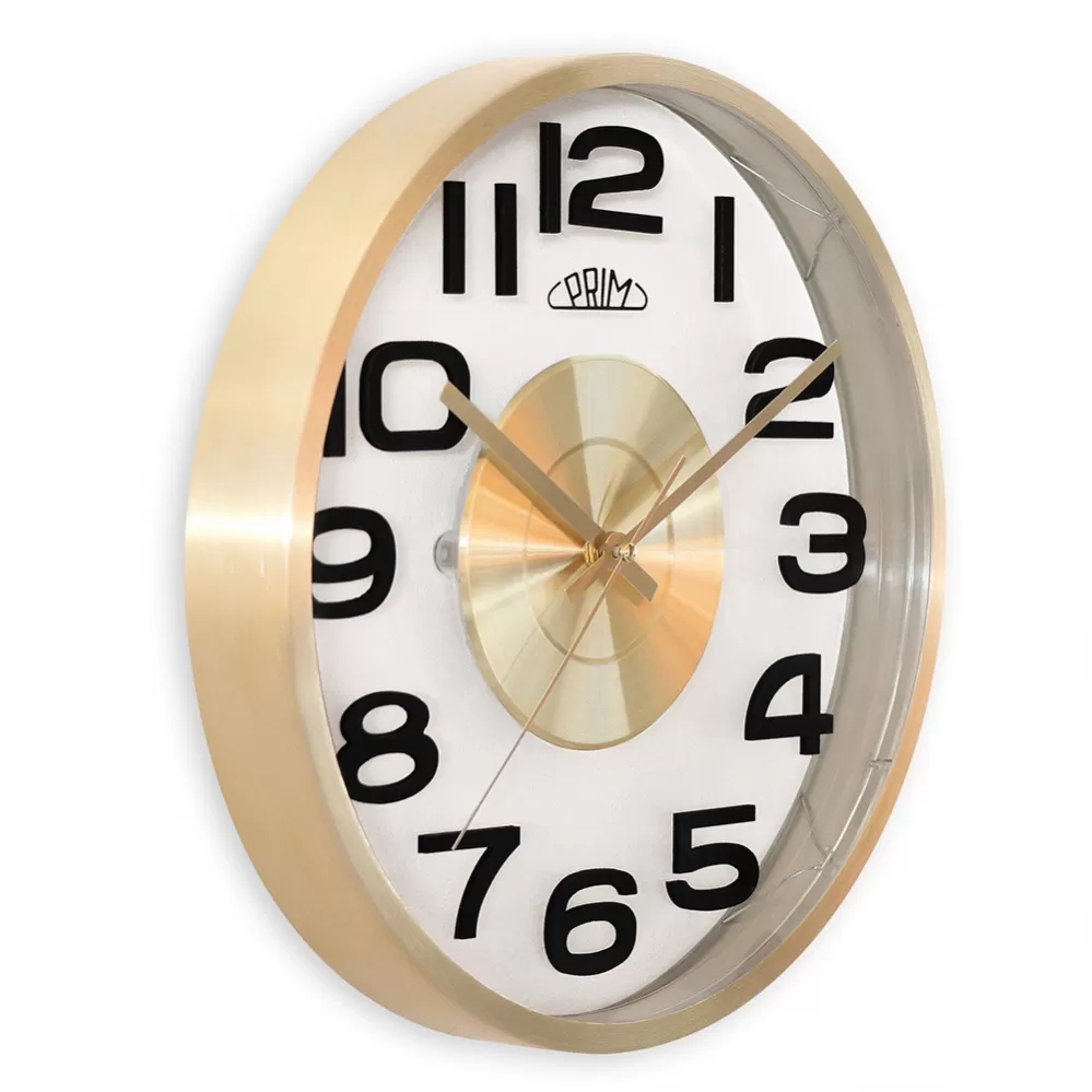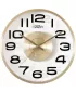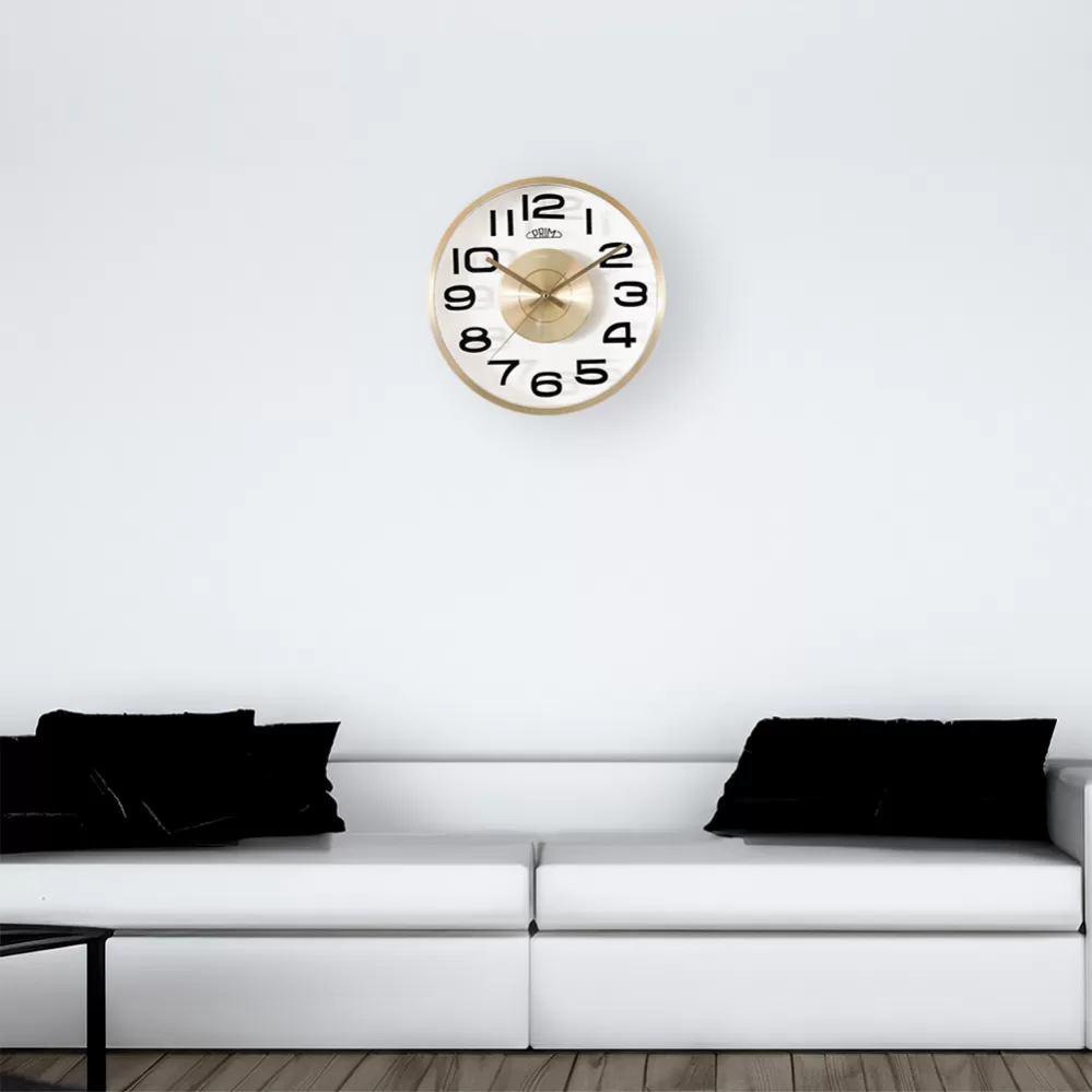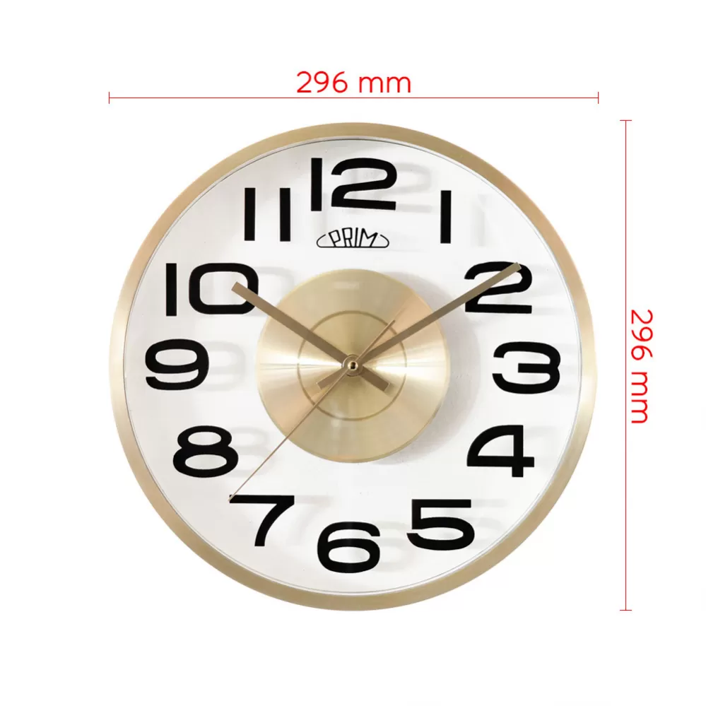 Pokud hledáte do své domácnosti, hotelu, prodejny nebo kanceláře velmi netradiční a originální kousek, jsou tyto hodiny tou pravou volbou. Luxusní designové hodiny s průhledným číselníkem a pozlacenými komponenty přinášejí kouzlo elegance a vkusu. Hodiny mají exkluzivní vzhled s vystouplými černými arabskými číslicemi, které dominují pozlacené hliníkové obruči a středu číselníku. Komponenty jsou chráněny vysoce kvalitním minerálním sklem. Průhledný číselník se dokonale přizpůsobí barvě stěny, což je činí nepřehlédnutelnými. Hodiny mají rozměry 296 x 47 mm.