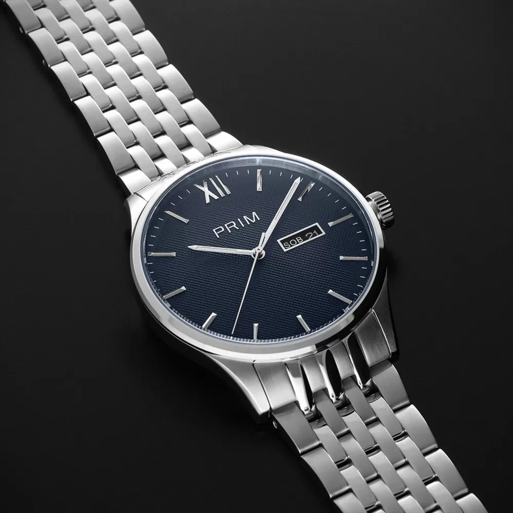 Objevte novou edici hodinek PRIM Klasik 25, které spojují nadčasový design s precizním zpracováním a odolným safírovým sklem. Tento model nabízí tradiční ukazatel dne v týdnu s českými názvy a přehledné zobrazení data. Novinkou je voděodolnost 10 ATM, která zvyšuje odolnost hodinek pro každodenní nošení. Propracovaný plastický číselník s fasovanými indexy a minutovou stupnicí na okraji zajišťuje výbornou čitelnost. Luminiscenční ručičky přidávají praktický prvek pro špatné světelné podmínky. PRIM Klasik 25 je ideální volbou pro stylového muže, který ocení eleganci i funkčnost.