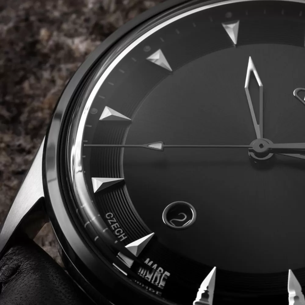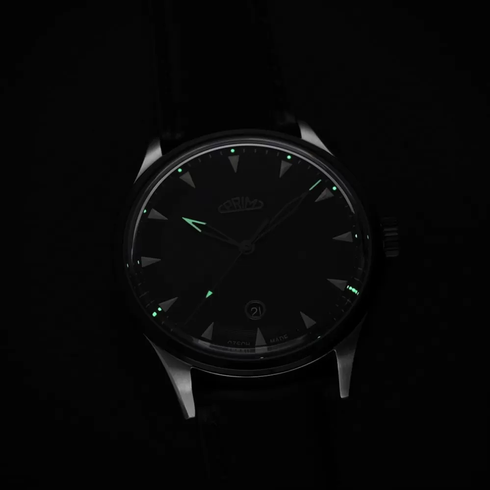 PRIM LEGATUS 59 představuje klasiku v novém pojetí, která se hodí do divadla, na obchodní schůzky i pro každodenní nošení. Díky luminiscenčním prvkům na číselníku a ručkách snadno přečtete čas i za šera a v noci. Safírové konvexní sklo omezuje odlesky a zajišťuje vysokou čitelnost i komfort při pohledu na ciferník. Uvnitř pracuje spolehlivý švýcarský kalibr Sellita SW200-1 s rotorem zdobeným českým lvem, který je viditelný průhledem ve víku. Hodinky jsou voděodolné do 5 ATM a dostupné v několika barevných variantách. Součástí balení je kovový tah i sladěný kožený řemínek, které podtrhují jejich nadčasový společenský styl.