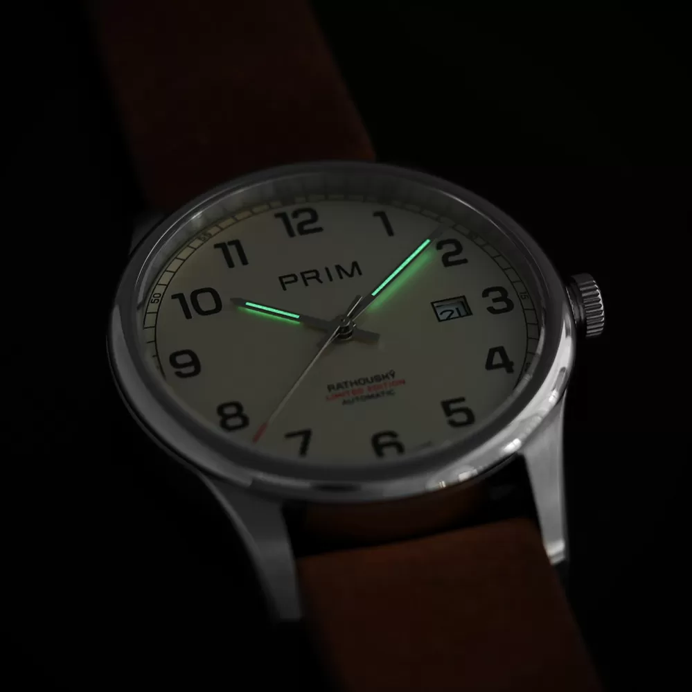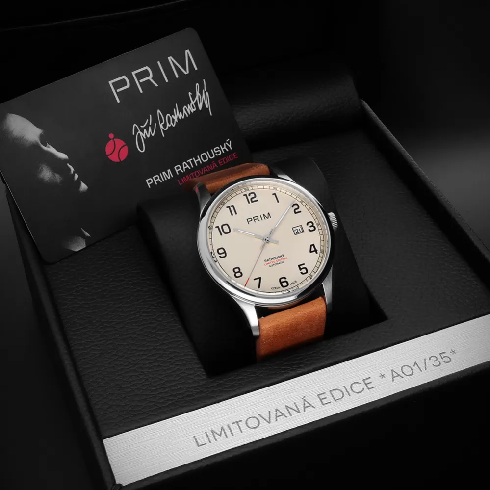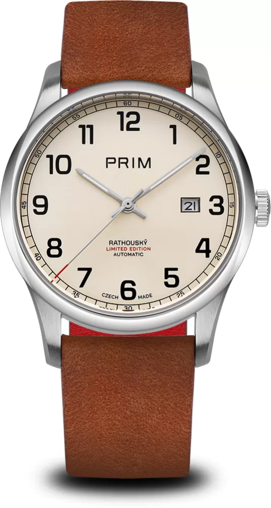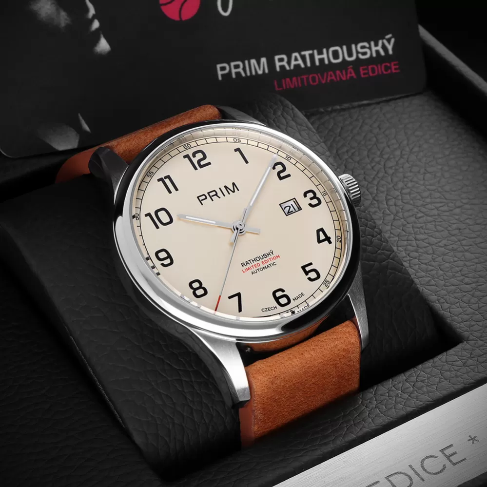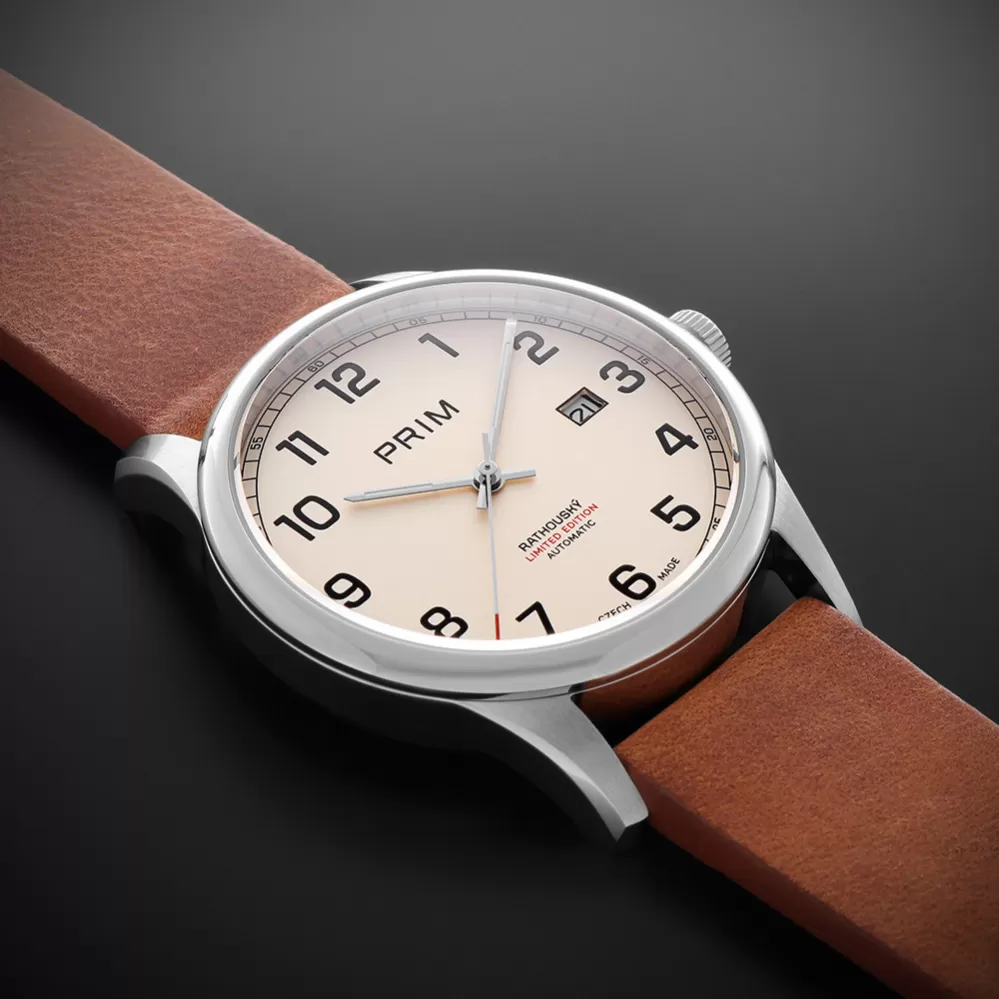 Představujeme limitovanou edici hodinek PRIM Rathouský Barell, která spojuje retro eleganci s moderním designem inspirovaným ikonickým fontem BC Barell od českého grafika Jiřího Rathouského. Tyto mechanické hodinky se švýcarským kalibrem Valanvron 24 zaujmou čistým zpracováním, přehlednými arabskými číslicemi a nadčasovým vzhledem. Kolekce obsahuje 70 kusů, rozdělených na dvě barevné varianty – béžovou a modrou, přičemž každý kus je individuálně číslován. Pouzdro z nerezové oceli 316L kombinuje leštěné a broušené prvky, doplněné o konvexní safírové sklo s antireflexní a antitouch úpravou. Design ciferníku zahrnuje tvarované ručičky s červenými detaily a precizní datumový ukazatel. Hodinky doplňuje ručně šitý řemínek z hovězí kůže, laděný do červené nebo modré barvy, s rychlovýměnným mechanismem a gravírovanou sponou. Díky elegantnímu vzhledu, moderním funkcím a důrazu na kvalitu jsou hodinky PRIM Rathouský Barell ideální pro každou příležitost. Tento exkluzivní model představuje spojení precizního řemesla a umělecké tradice, které zaručuje dlouhou životnost i nadčasový styl.